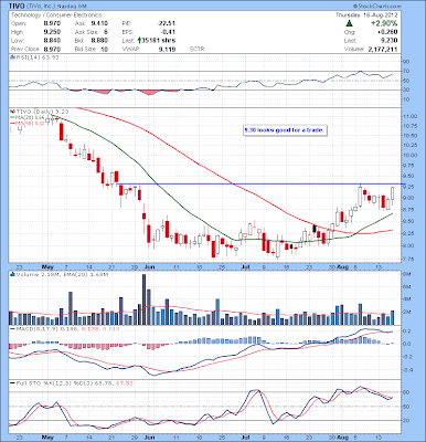 TIVO 9.30 looks good for a trade.